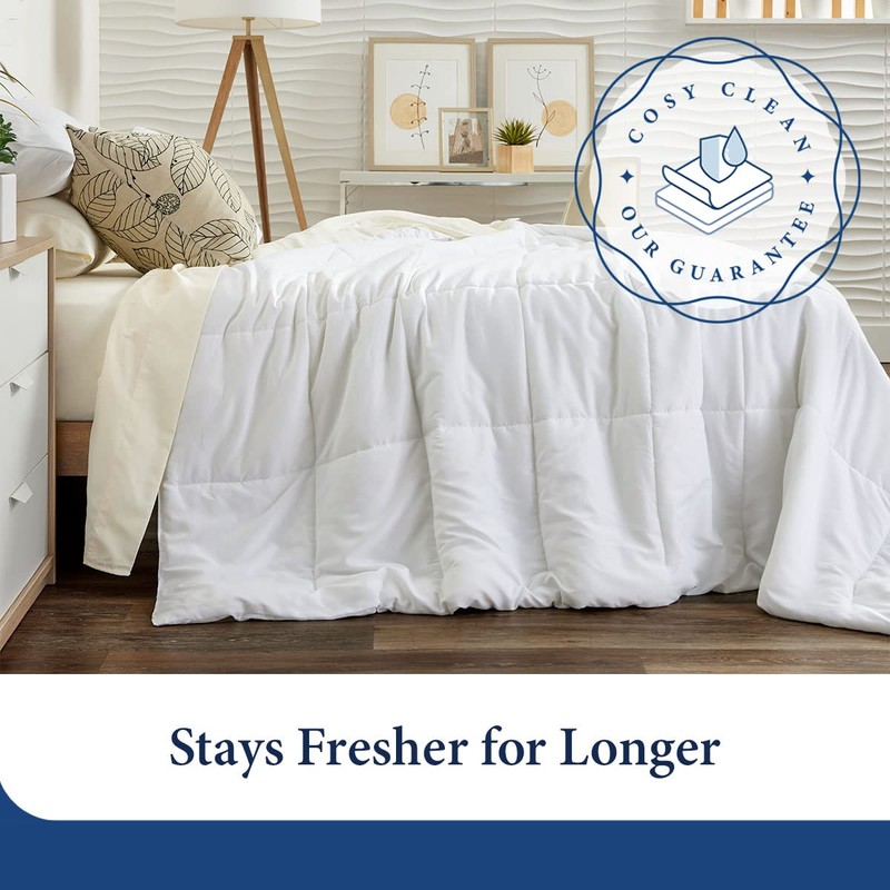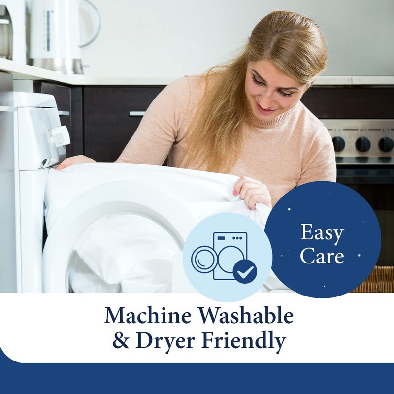 • EASY CARE - Our comforter is machine washable (on gentle cycle with cold water) and dryer safe (tumble dry on low heat). No need for ironing or bleaching! This comforter is made to last. Our Luxury Comforter provides shrink, odor, fade, and stain resistance, and will fight against wear and tear wash after wash. PLUS, it repels common non-living household allergens! Compared to traditional cotton bedding, our comforter stays fresher for longer and is oh-so-easy to care for.