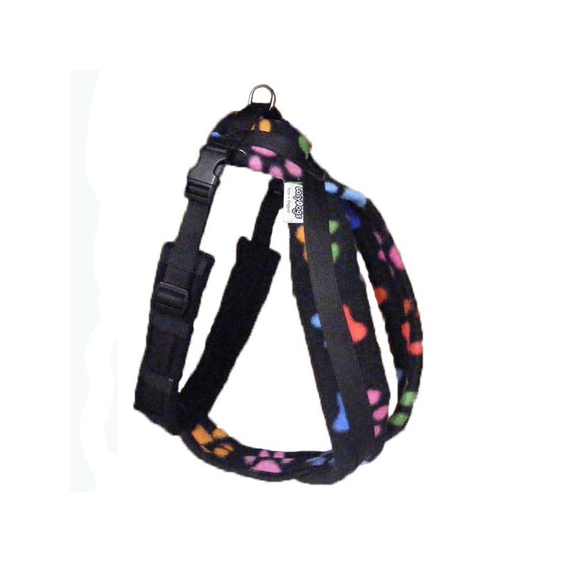 CosyDogs Fleece Dog Harness in Black With Multi Coloured Paws: Size 3