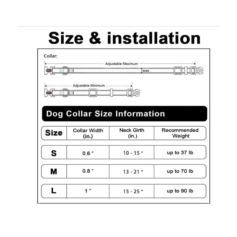 - 【Size M】"M" - Neck Fit 33-55cm, Width 2cm; please measure your dog's neck girth refer to our size chart before ordering.Pls note that main photos are taken from L size.