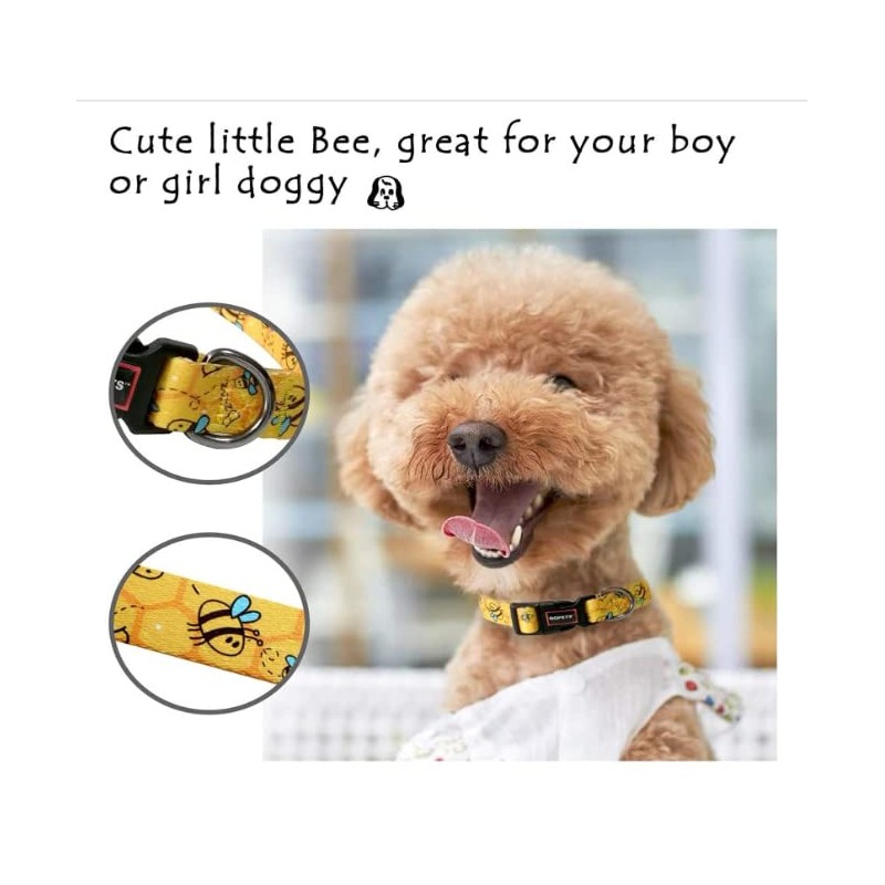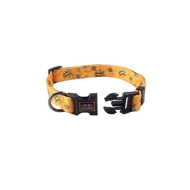 Cosyhome london Dog Collar With Colourful Bee Patterns,Adjustable Durable Pet Collars for Small Medium Large Dogs(bumblebees, m)