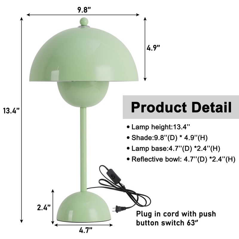 - 【Sleek and Delicate Table Lamp】This is a high-quality and modern mid-century dome table lamp made entirely of metal. It has a sleek look and beautiful finish that can be matched with a variety of décor styles such as contemporary, industrial, vintage, retro and so on. A variety of color options are available, including black, white, yellow, red, gentian blue, pink, pearl purple, pastel green, turquoise green, and more.