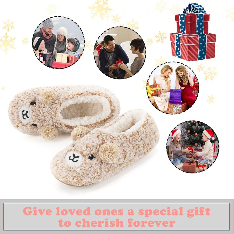cosyone1997 Cute Slippers for Women Adults Boys Kids Girls Teens, Fuzzy Bedroom Shoes Indoor, Soft Cozy Fluffy House Socks, Unique Funny Christmas Gifts for Mom Grandma Animal Lovers, Bear Size 7-8