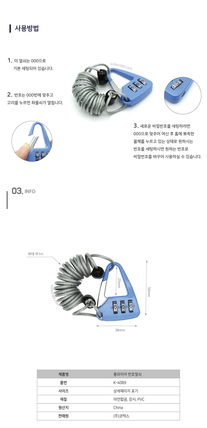 Cotec Long Wire Combination Padlock 4089 Hardware 3ea