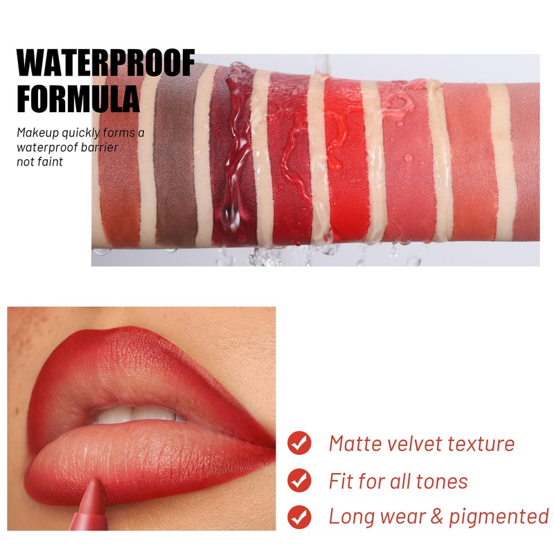 - Easy-to use, peach-pink matte lipsticks with bold and interesting hues, this lip pencils adopts a formula, containing the latest and more colors. It is not only easy to apply but also helps you maintain your most natural state. It is velvety-and-silky