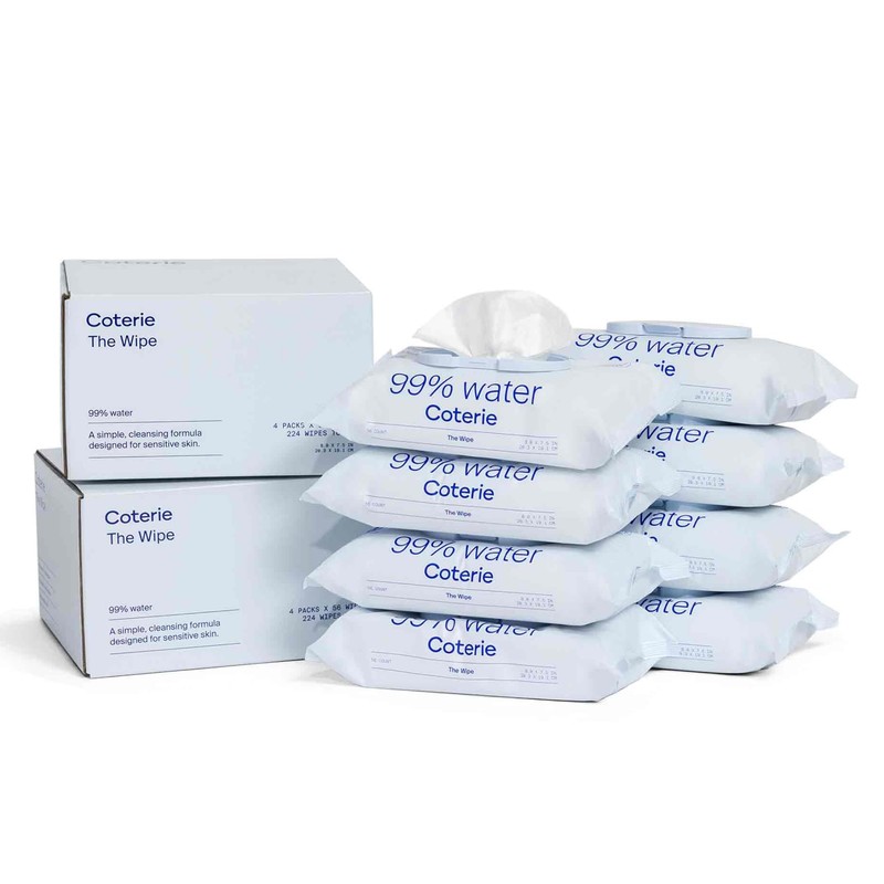 Coterie Baby Wipes for Sensitive Skin, Plant-Based and Plastic-Free Fibers, 99% Water, Hypoallergenic, pH Balanced, Unscented, Clean and Gentle Baby Essentials, 8 Pack, 448 Count