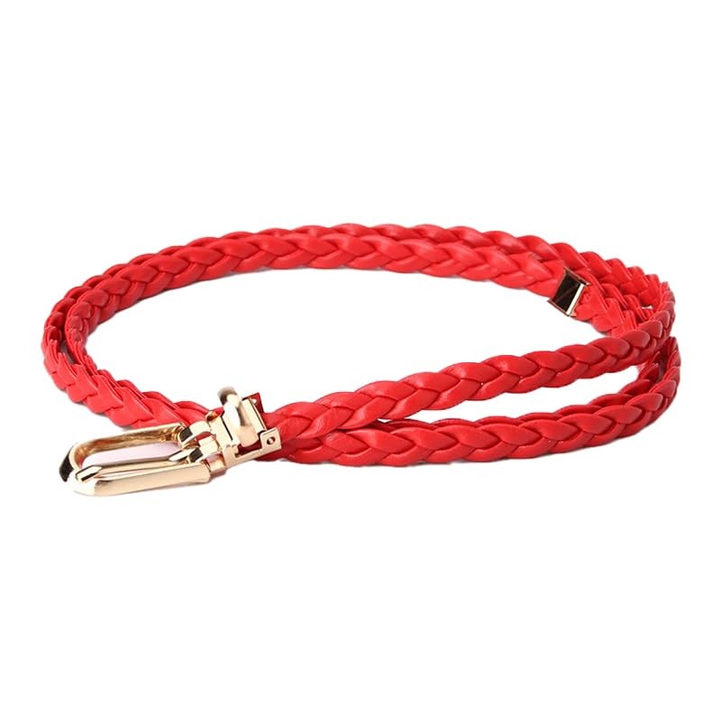 COTIM COYIN Women's Skinny Braided Leather Belts Thin Woven Waist Belts for Jeans Pants Dresses, Red, 1*105cm/0.39*41.32nches