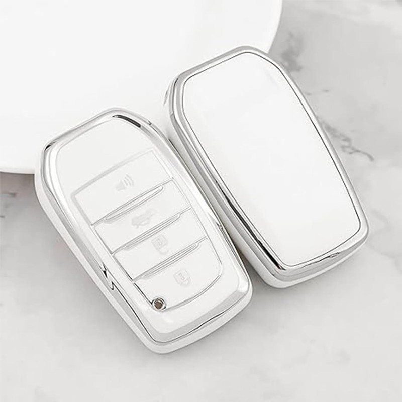 COTIYBOK for Toyota Key Fob Cover,Leather Keychain Soft TPU Protection Key Case for 2019-2024 Venza,Grand Highlander,Land Cruiser,RAV4 Prime,Fortuner,Corolla Cross,Hilux Smart key 4 Buttons(B White)