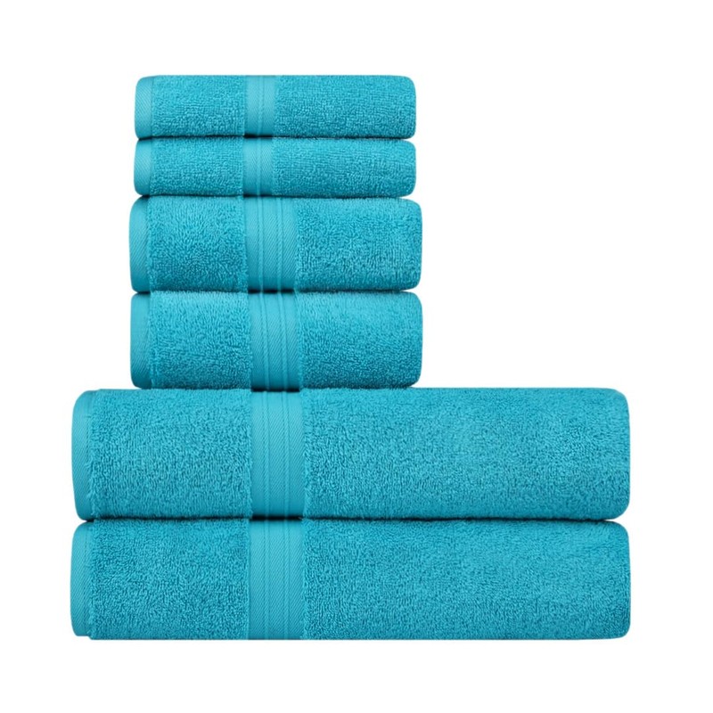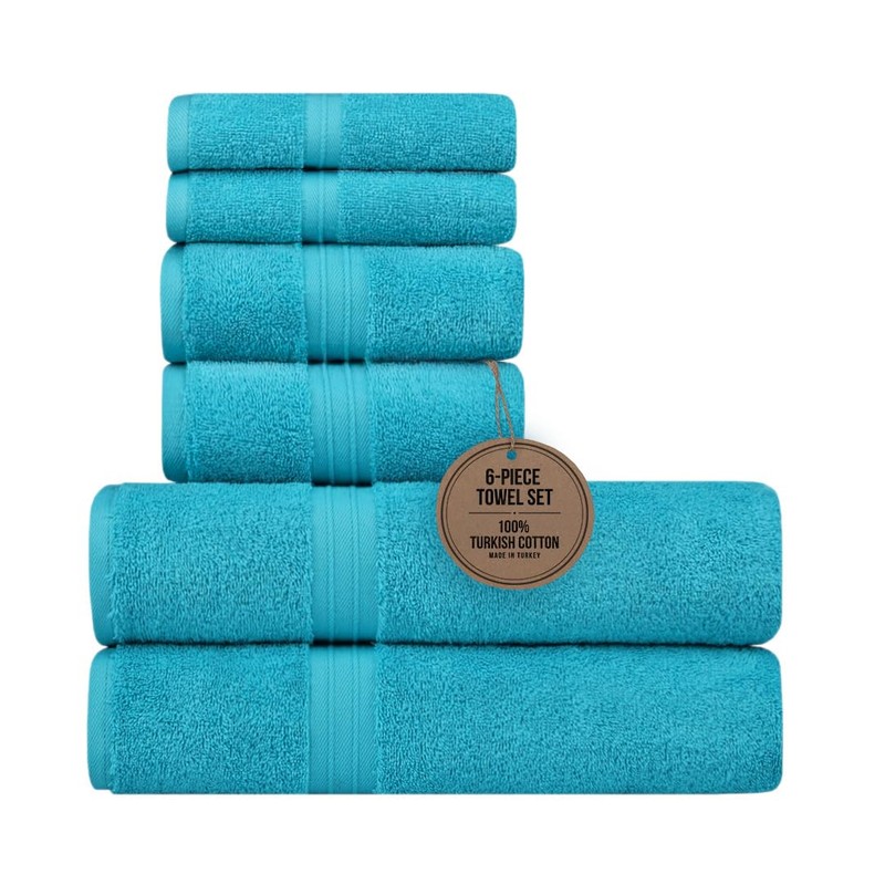 Cotoniche 6 Piece Bath Towel Set - 100% Cotton & Absorbent - Luxury, Cute, Hotel Quality and Cozy Include 2 Bath Towel (28" x 56"), 2 Hand Towel (16"x28") and 2 Wash Cloths (12"x12") - Turqoise