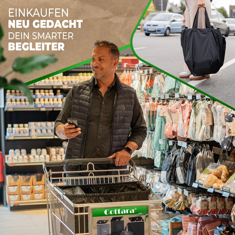 Cottara® Shopping Bag for Shopping Trolley with Cooling Compartment, Foldable Shopping Trolley Bag for Hanging with Cooling Function and Shopping Chip, Ideal Bag for Shopping Trolleys and Shopper