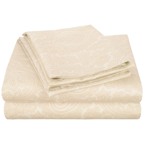 Cotton Blend 600 Thread Count, Deep Pocket, Soft, Wrinkle Resistant 4-Piece California King Bed Sheet Set, Paisley, Ivory