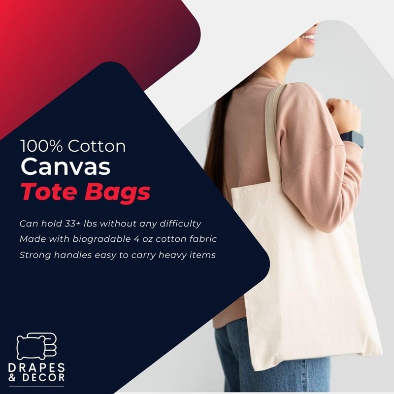 - Versatility Meets Practicality: Our plain canvas tote bag packs are great to use as cotton shopping bags , plain tote bags to decorate, plain canvas bags for craft, teacher bag, beach bag/ shopper bag / linen bag / gym bag, babysitting bag, beach bag, laptop bag, yoga bag, teacher bag, nurse bag, library bag, book bag, party bag, birthday bag, trade show bag, conference bag, promotional bag, advertising bag, candy bag, silk screen printing bag, church bag, Christmas bag, Halloween bag, thanksgiving bag, holiday bag, welcome bag, cloth bag, cotton bag / sublimation bags and plain canvas bags to decorate for various other events.