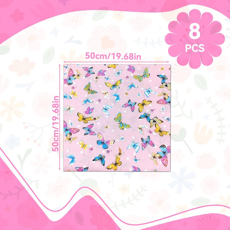 Cotton Fabric Patchwork Fabrics 8 Pieces 50 x 50 cm Patchwork Fabric Package, Multicoloured Cotton Fabric Patchwork Fabrics for Sewing, Scrapbooking & DIY Crafts (Butterflies)