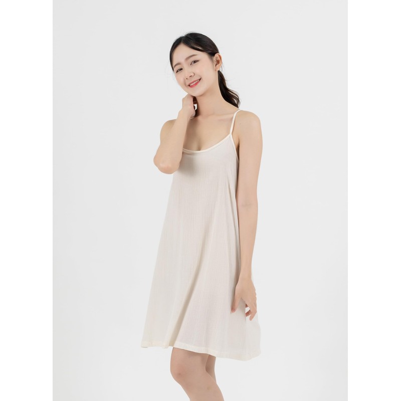 Cotton Full Slip Under Dress Knee Length Adjustable Spaghetti Strap Undergarment Nightwear (S/M, Beige)