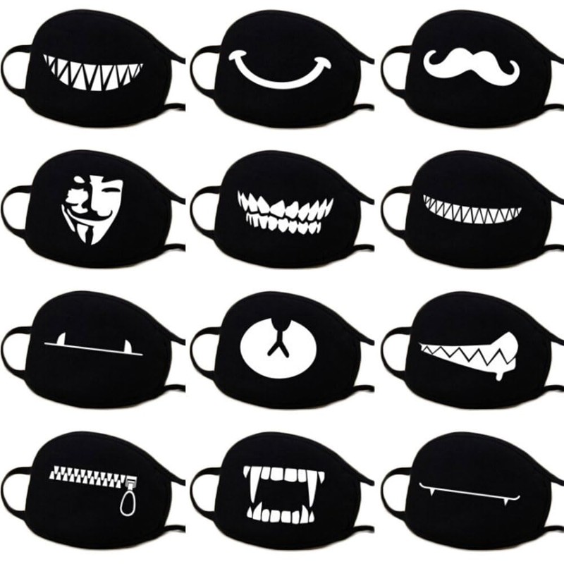 Cotton Mask, Reusable Black Daily Anti-Dust Mouth Cover with Funny Patten for Outdoor Activities (Zipper)