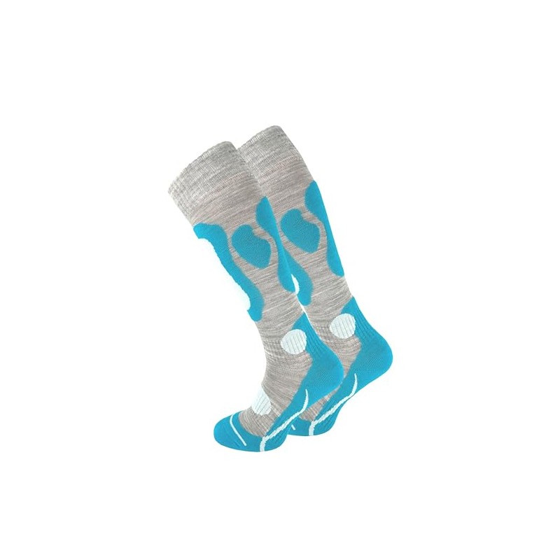 Cotton Prime Ski Socks for Men and Women (2 Pairs) - Warm Ski Socks, Thermal Winter Socks with Padding, Knee Socks, Ski Socks for Winter, Snowboarding, 2 pairs of turquoise/grey