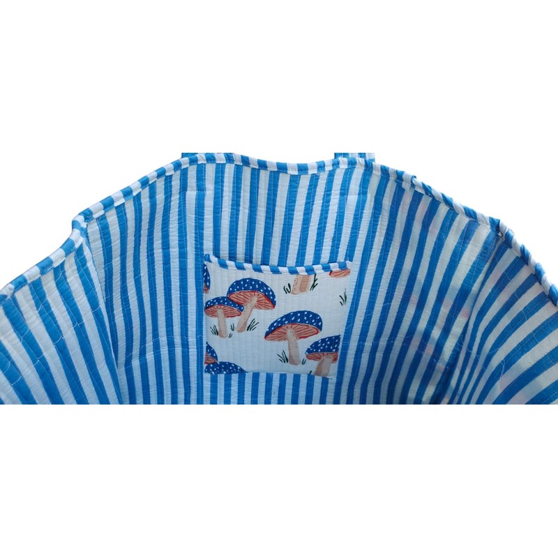 Cotton Quilted Tote Bag, Handmade Indian Shopping Shoulder Bag Mushroom Print