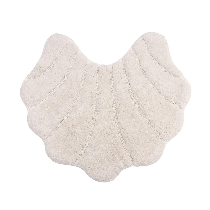 Cotton shell toilet mat Cotton Shipping: We use Indian Cotton which is #2 in the world. Shell shaped toilet mat makes your bathroom look elegant. Made of cotton material, it is highly absorbent and can be easily washed even if it gets dirty. The mat has a non-slip backing to keep it from slipping.