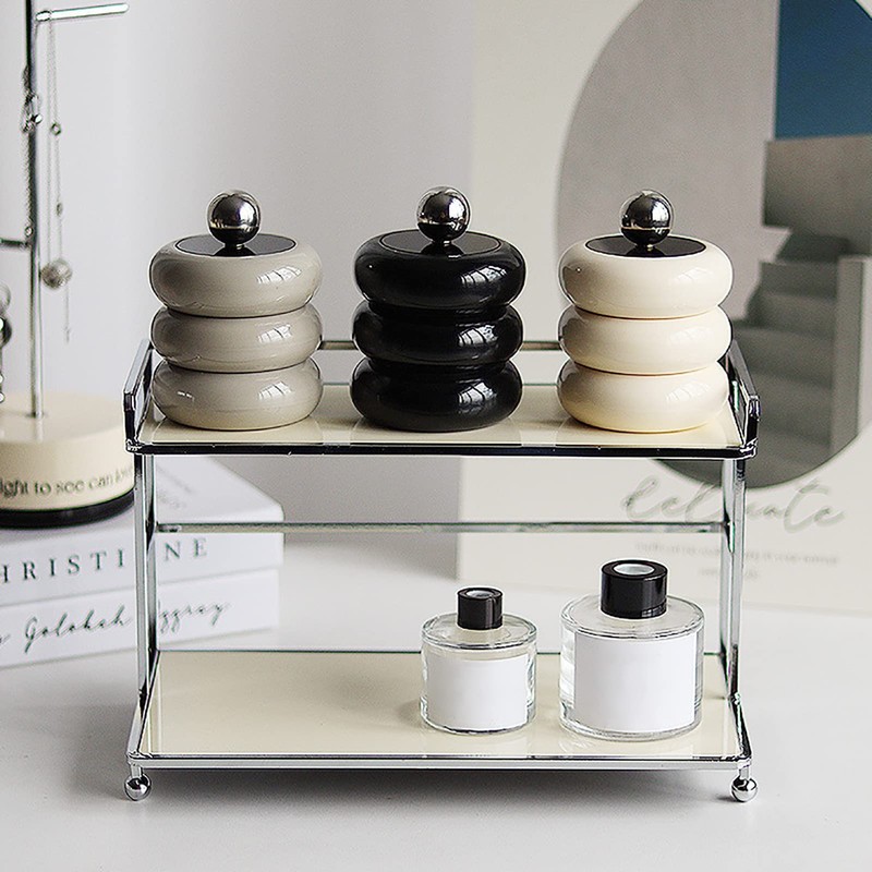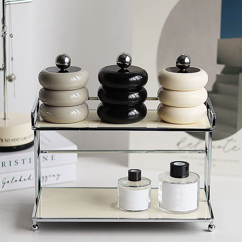 2. Premium Material: The bathroom storage containers are made of resin, acrylic, and stainless steel, matched with a sealing lid, will not rust, can be refilled, and are durable.