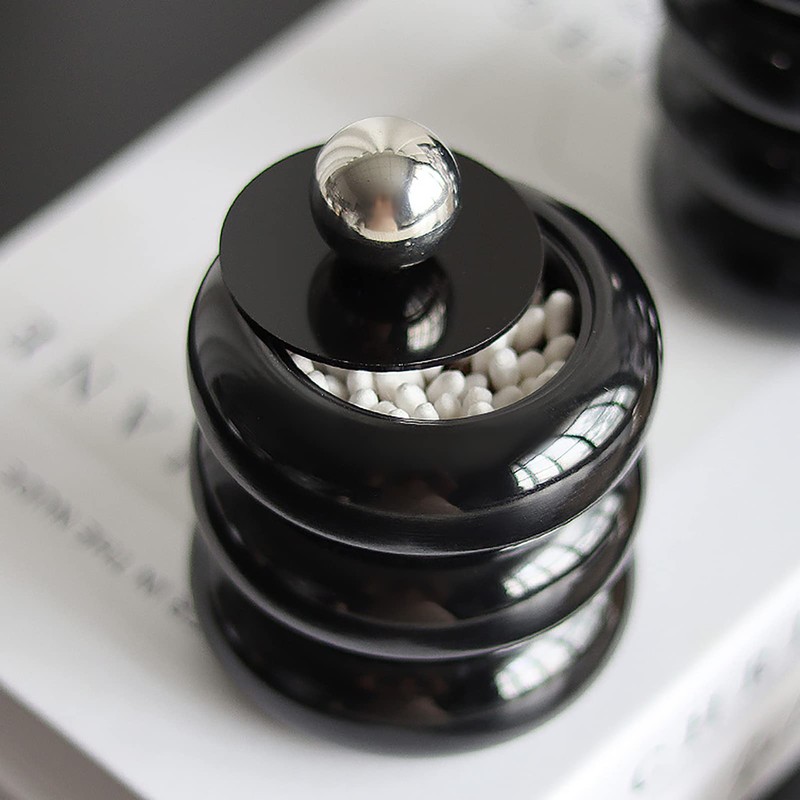 Cotton Swab Container, Dust Proof Nordic Style Qtip Holder with Lid for Bathroom (Black 3 Layers)