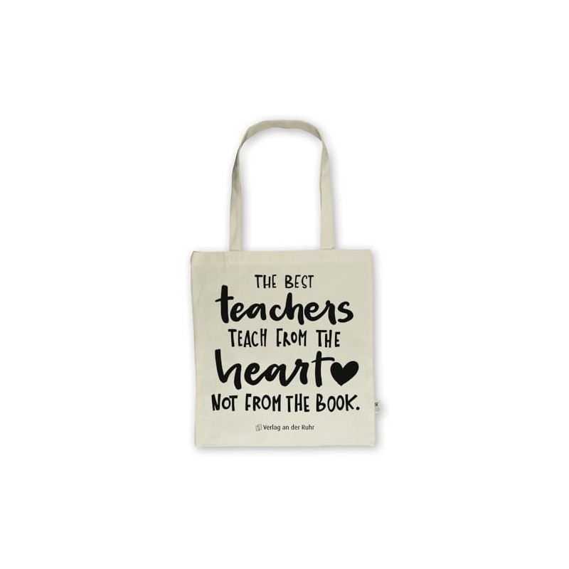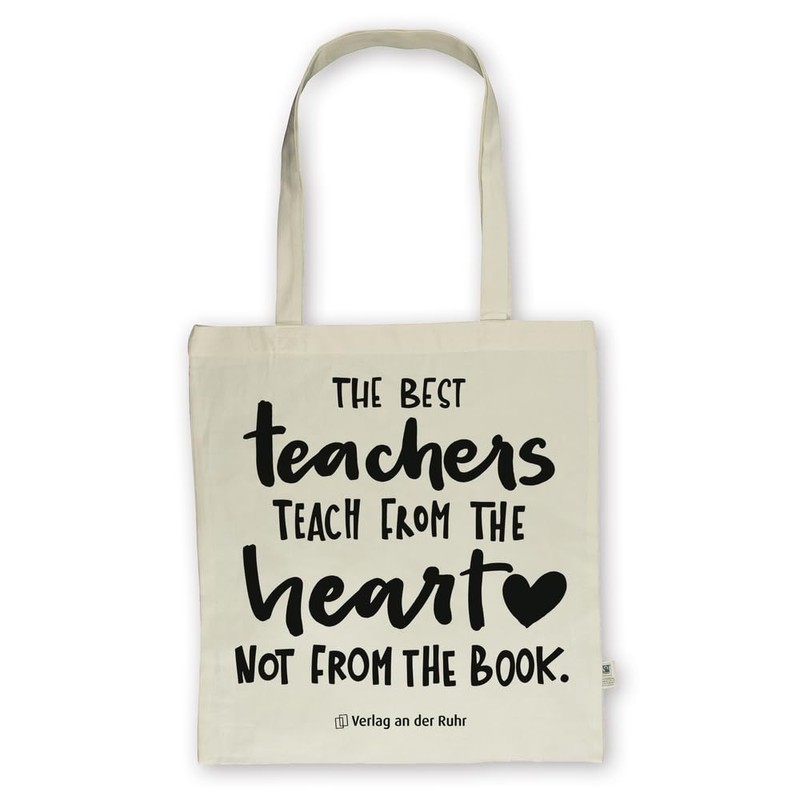 Cotton Teacher Bag - Edition "The best teachers teach from the heart, not from the book": Fairtrade Certified 100% Organic Cotton Tote Bag with Long Handles
