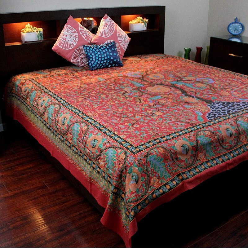 - IMPECCABLE HANDMADE TREE OF LIFE FLORAL DESIGN: This ravishing bed sheet, tapestry wall hanging, tablecloth, bedspread is embellished with a tree of life print on a gorgeous red background