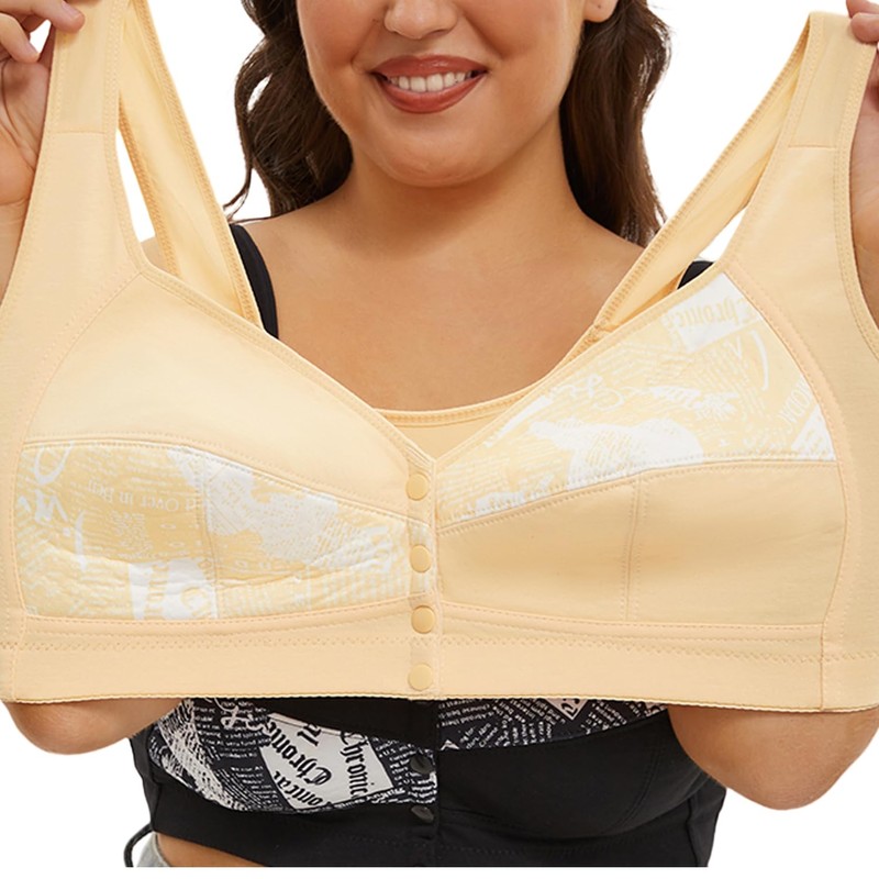 Cotton Whisper Front Closure Push-Up Sports Bra for Mature Women Apricot 48C