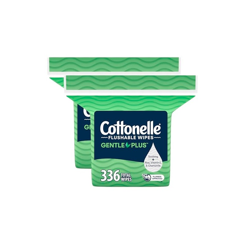 WHAT'S INCLUDED — 2 refill bags of Cottonelle GentlePlus Flushable Wet Wipes, 168 flushable wipes per pack (336 wipes total); packaging may vary