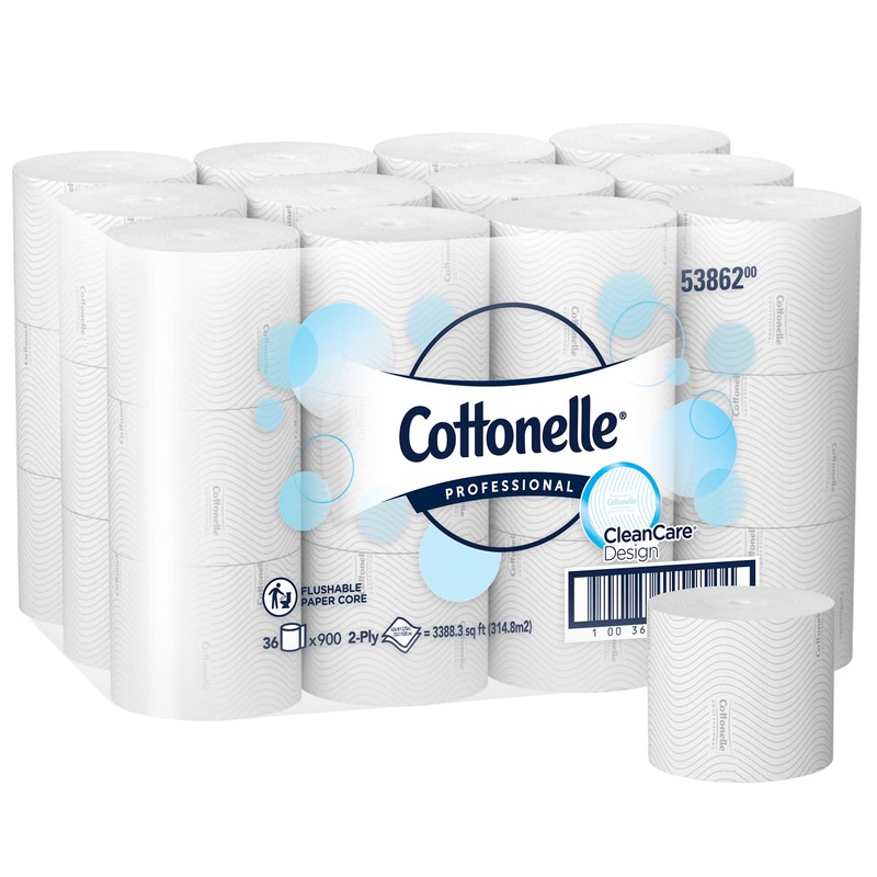 Cottonelle Paper Core High-Capacity Standard Toilet Paper (53862), with CleanCare Design, 2-Ply, White, 36 Rolls/Case, 900 Sheets/Roll, 32,400 Sheets/Case