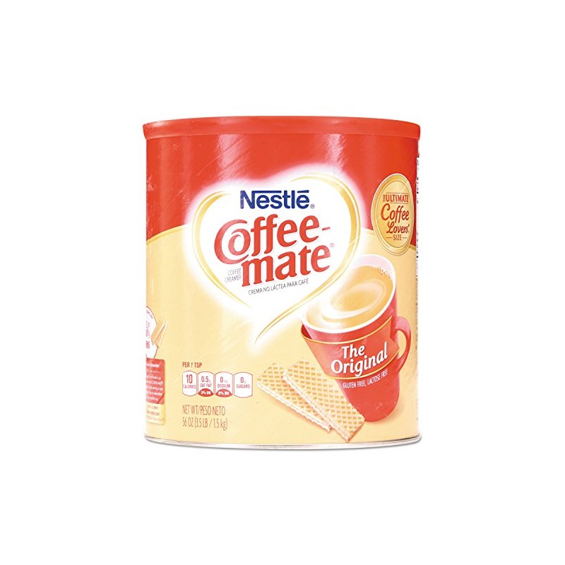 Lactose-free, gluten-free, Kosher dairy and shelf-stable. Reach for the rich taste of Coffee-mate no matter where you are. Two-year shelf life at room temperature. Flavor: Original; Packing Type: Canister; Premeasured: No; Capacity (Weight): 56 oz.