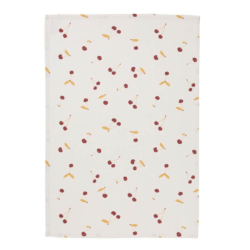 - Add a fruity and sparkling touch to your kitchen with the cherry towel. The gourmet red cherry print on an unbleached background will enhance your space while providing remarkable efficiency when wiping dishes or surfaces.