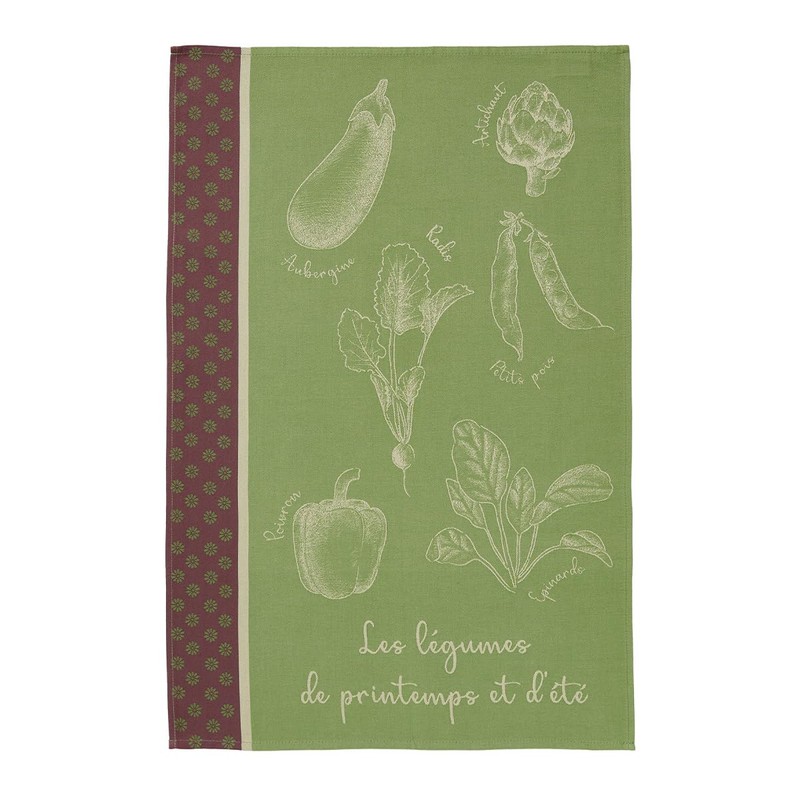 - Add a touch of good mood to your kitchen with the "Potager de Printemps" tea towel. Its colourful and cheerful patterns, representing radishes, peas and artichokes, breathe a spring spirit into your home.