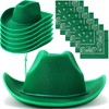 Coume 6 Sets Adult Cowboy Hat for Women and Men Western Cowgirl Hats with Adjustable Drawstring and Cowboy Party Paisley Bandana(Green)