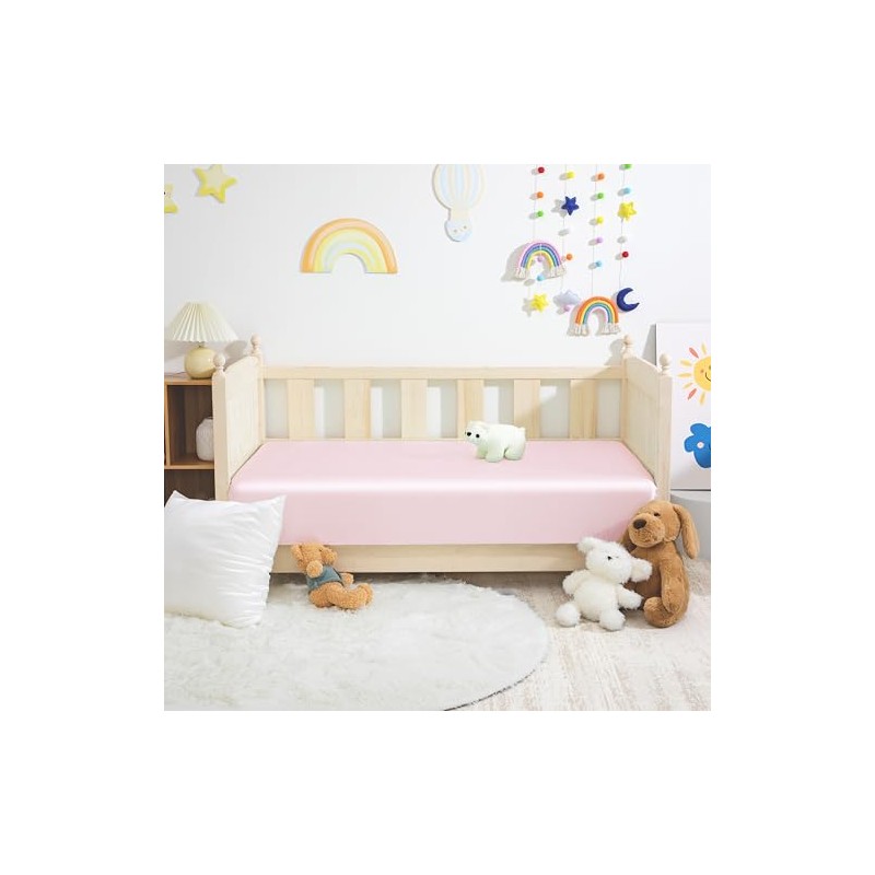 - Luxury meets practicality: The satin crib mattress sheet is made of 100% premium satin polyester. Its ultra-soft, silk-like surface feels cool and gentle against delicate skin, reducing friction to prevent hair tangles and skin irritation. The deep 8-inch pocket effortlessly hugs standard 52"x28" crib mattresses, ensuring a secure fit without bunching. Ideal for year-round use, this breathable fabric regulates temperature for uninterrupted sleep.