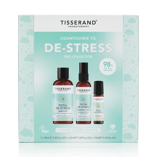 • Take time to slow down, breathe deeply and unwind from the stresses of the day with this ultimate collection of Total De-Stress products containing a comforting blend of Geranium, Orange and Nutmeg 100% natural pure essential oils.