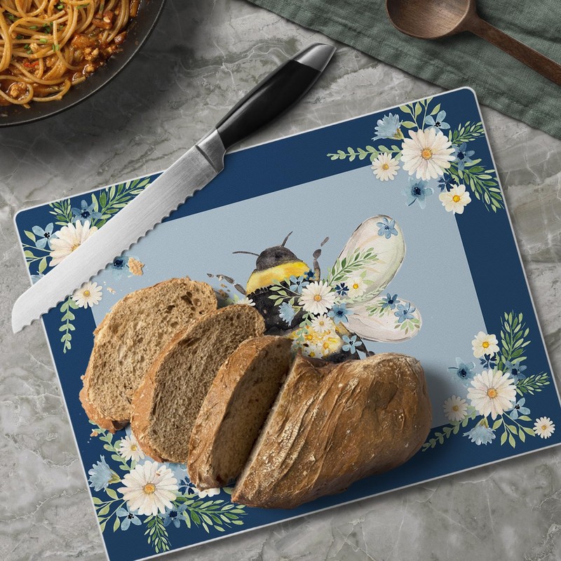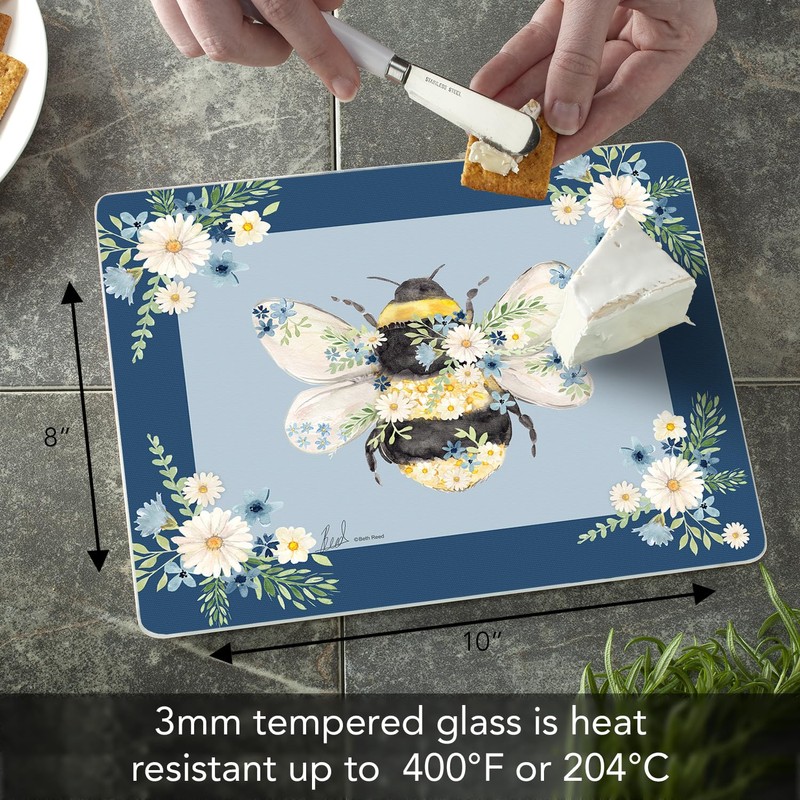 CounterArt Beautiful Bee 3mm Tempered Glass Cutting Board 10” x 8” Manufactured in the USA Cheese Board Bar Board Dishwasher Safe