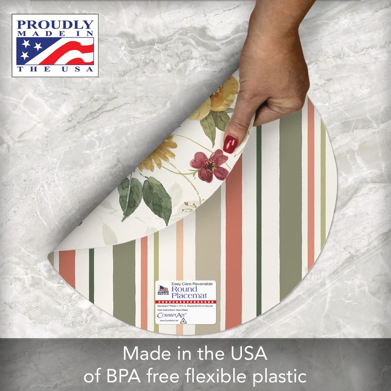 CounterArt Blessed by Nature 4 Pack Round Reversible Easy Care Flexible Plastic Placemats Made in The USA Reversible Flexible Easily Wipes Clean