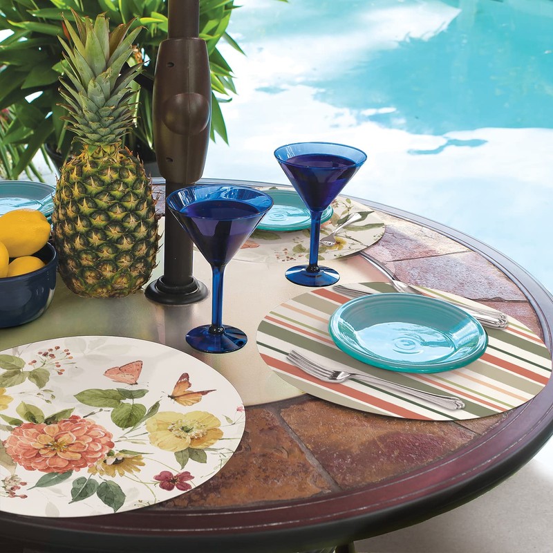 - REVERSIBLE- Placemats are reversible, featuring different coordinating designs on both the front and back of each mat. Attractive coordinating designs are great for everyday meals, parties and outdoor entertaining.