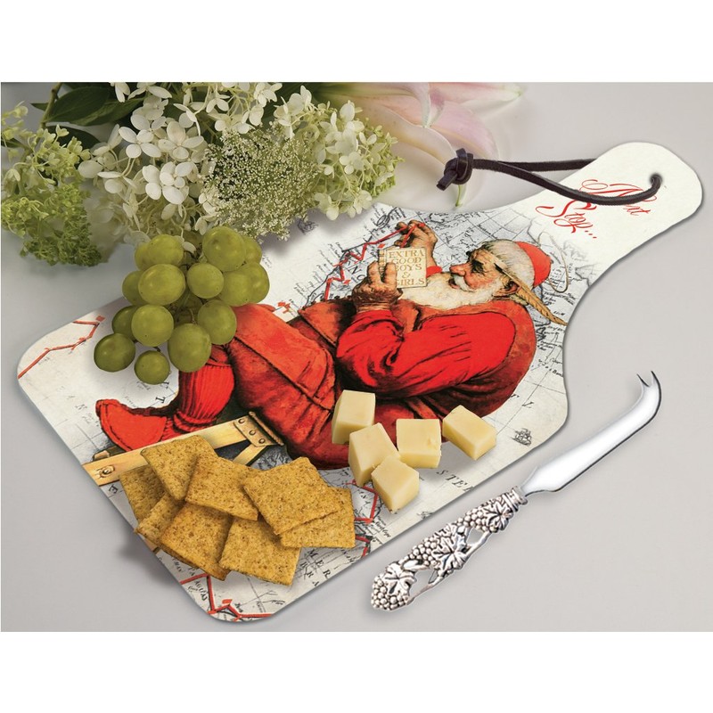CounterArt Santa is Coming 14-1/4-Inch Glass Cheese Cutting Board with Cheese Knife
