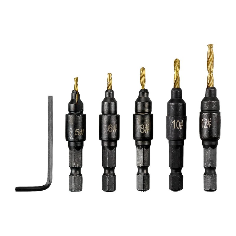 Countersink Drill Bit Set, Jagowa 5Pcs Replacement Drill Bits and One Wrench, 1/4" Quick Change Hex Shank Adjustable Countersink Woodworking Tool