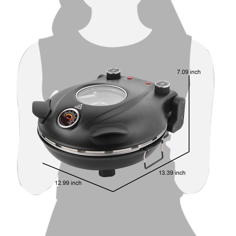 - Electric Pizza Oven:A flat 12-inch pizza oven made of natural ceramics transfers heat, so your pizza cooks evenly and the crust is crisp. Easily remove the stone for hassle-free cleaning, ensuring effortless maintenance.