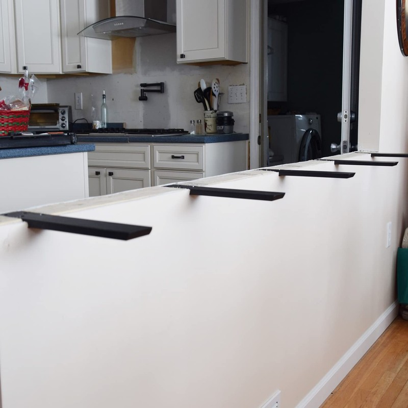 SAFE - Our brackets mount directly to your knee / pony wall providing a strong and stable structure for your granite countertop to rest on.