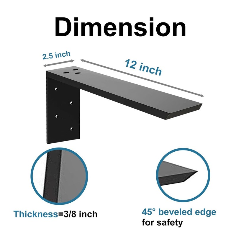 - Size and Dimension: the size of our countertop support bracket 12" x 6" x 2 1/2". It fit the countertop with overhangs between 12"~16". The heavy duty L bracket is suitable for quartz, granite, wood, concrete and laminate countertops. It’s an economical way to protect your countertop investment. The end of the brackets is specially designed a 45° angle beveled edge and protect users from hurting.