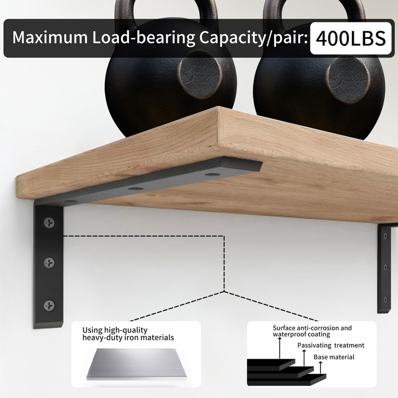 - [Durable and sturdy with multiple sizes]:This countertop bracket is made of high-quality heavy-duty iron. The thickness is 0.4 Inch, and the load-bearing capacity of each pair of countertop shelf brackets is 400LB. Can provide sufficient support to prevent the tabletop from sagging or cracking. The surface of the heavy duty countertop has a waterproof and corrosion-resistant coating, which also reduces the need for frequent replacement and additional costs during the countertop metal brackets' service life. We offer countertop supports in different sizes: 10 inch,12inch, 14inch, 16inch, 18inch, 20inch. You can choose the appropriate size according to installation requirements.