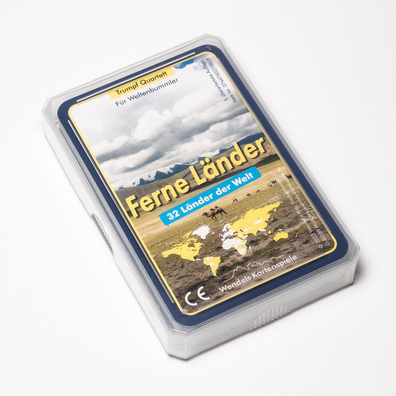 - 2 TRUMPF QUARTTE map games with 32 countries each: far countries and countries of Europe. Ideal addition to the pack of 3 Wendels card games over mountains, rivers and cities