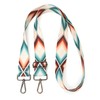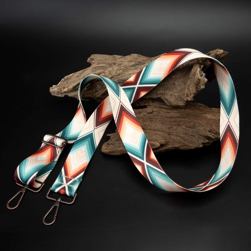 - CHEYENNE ARROWS | This Sahara color palette Purse Strap Replacement is designed with numerous shades of blue-green, orange, and mellow tans that flow in an iconic geometric arrow pattern.