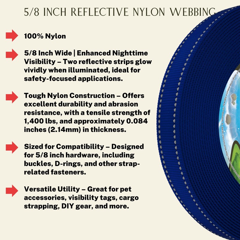 Country Brook Design - Royal Blue Reflective Nylon Webbing (5/8 Inch, 5 Yards)