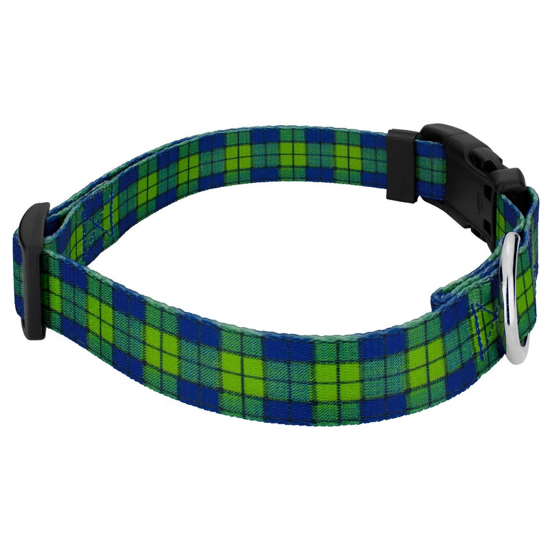 Country Brook Petz - Deluxe Blue and Green Plaid Dog Collar - Made in The U.S.A. - Plaid and Argyle Collection Featuring Charming Designs (1 Inch, Medium)