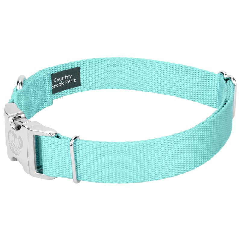 Country Brook Petz Premium Nylon Dog Collar and Leash Set for Small Medium Large Dogs - Vibrant 25+ Color Selection (Large, 1 Inch, Light Cyan)