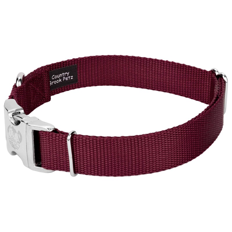 Country Brook Petz Premium Nylon Dog Collar with Metal Buckle for Small Medium Large Breeds - Vibrant 30+ Color Selection (Large, 1 Inch Wide, Burgundy)