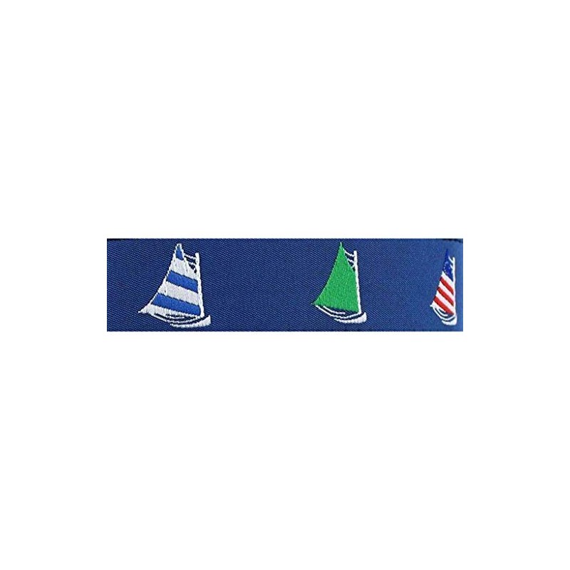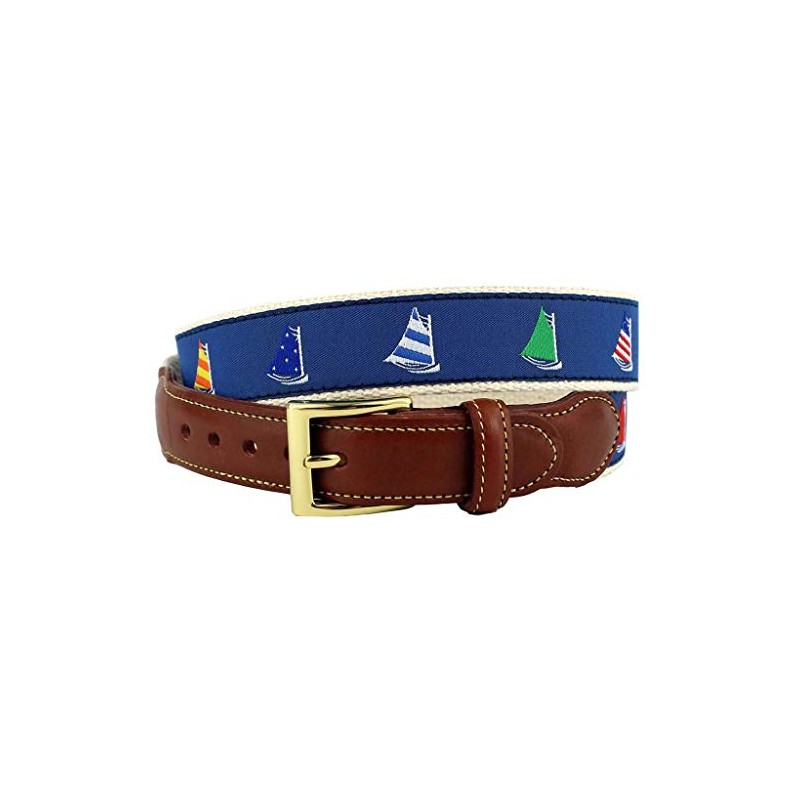 COUNTRY CLUB PREP Sailor's Delight Cat Boat Leather Tab Belt in Blue on Natural Canvas
